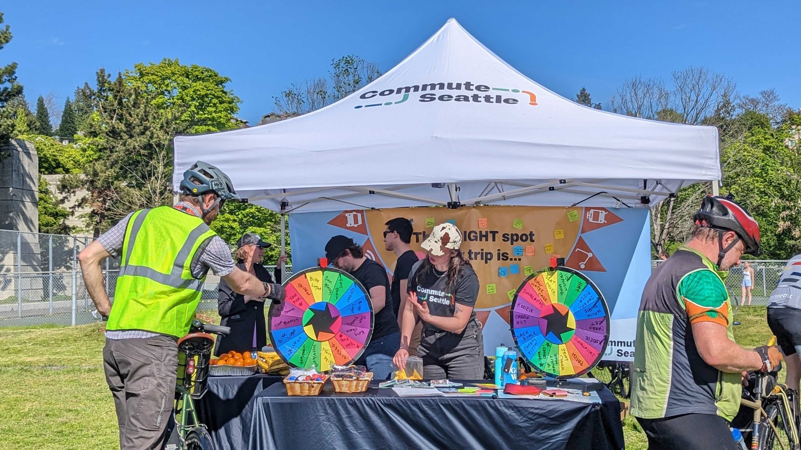 Commute Seattle celebrated Bike Month by hosting Spin into Bike Month on May 11 at Sam Smith Park off the I-90 trail, a popular trail for biking, rolling, and walking.